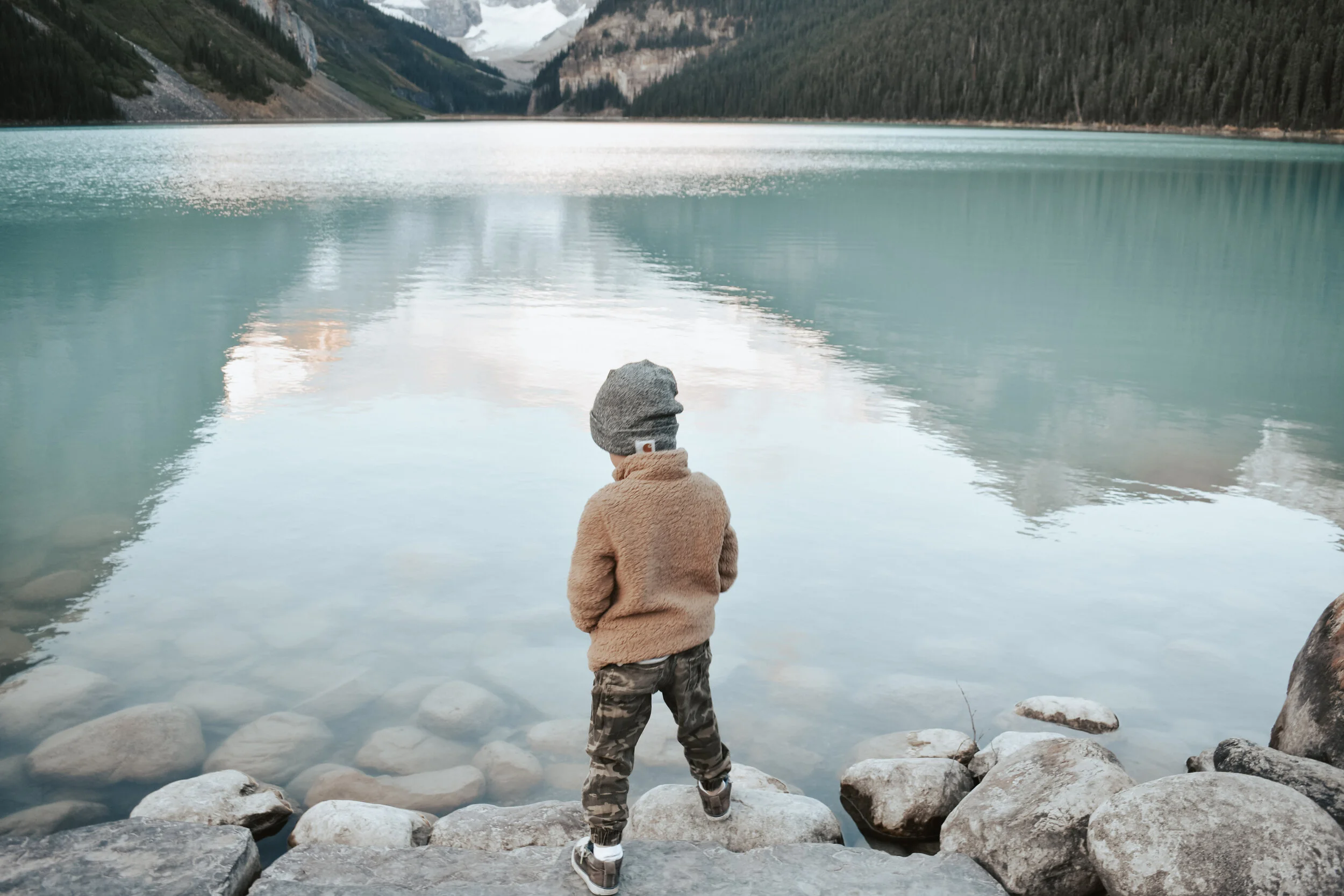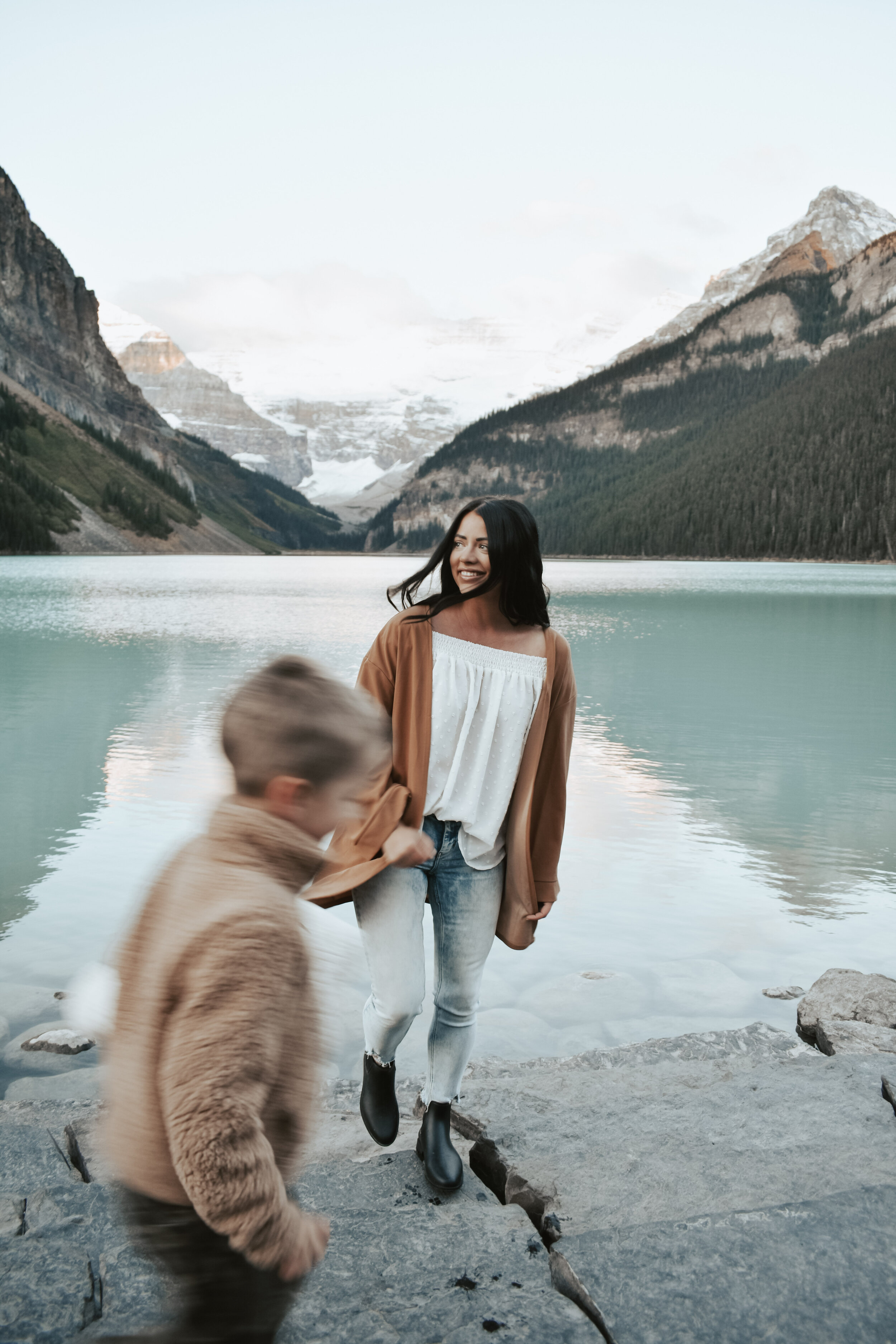 We clearly make quite a few trips to the mountains and have a couple favourite spots, Lake Louise Inn is one of those favourites. I honestly can't decide which season of the year in Lake Louise is my favourite; Winter + Spring means the lake is frozen and so fun to walk/skate on, everything is white and bright making it such a perfect Winter escape. While Summer + Fall is colourful, filled with life (and people) bringing such gorgeous freshness to all your scenes. This was my first Autumn trip to Lake Louise Inn during Larch season and I was amazed by the colours and excitement of the entire area. Everyone seemed very excited to experience the lake during this autumnal season and I don’t blame them - the colours are stunning.