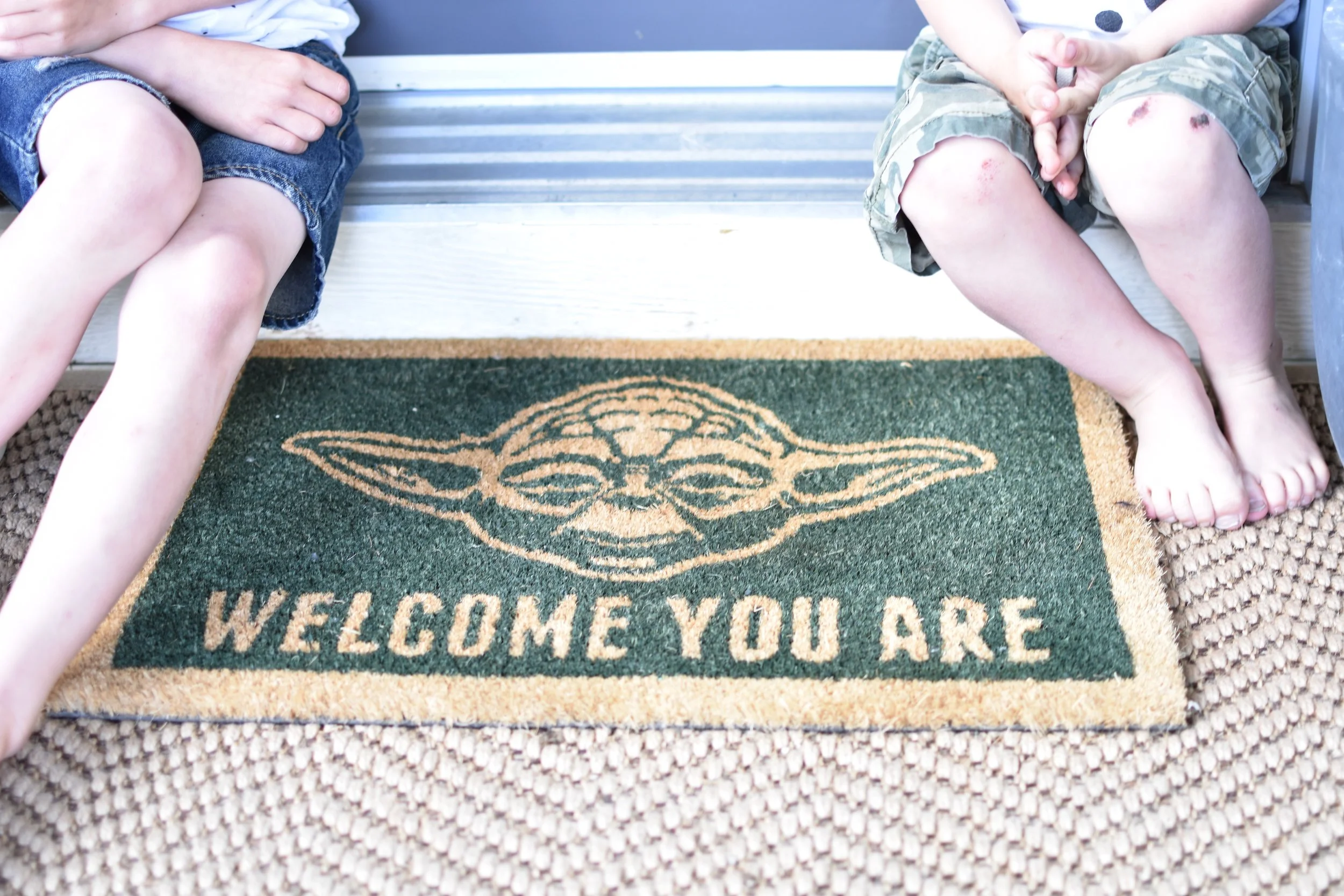 Our previous mat had seen better days, as much as I loved to warn people coming in to “Beware of the Kids”, it needed a major facelift! I had many mats in my Amazon cart until Hubs came home with the Yoda mat - I’m not against it, but not what I had in mind! Its all about compromise, right?